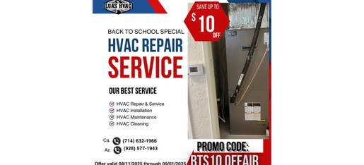Back-to-school season can bring its share of stress. Let us take care of your home's comfort so you can focus on what matters most! Get $10 OFF your next HVAC service with our Back-to-School Stress Relief promotion. Valid from 08/11/2025 through 09/01/2025